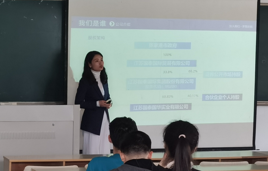 随后,孙凌与毕业生“零距离”介绍了江苏国泰国华实业有限公司的发展情况,多名毕业生递交简历与企业达成了初步就业意向。