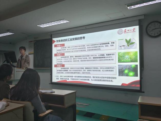 纺织工业作为中国的传统支柱产业,见证了国家从百废待兴到繁荣昌盛的辉煌历史。此次读书分享会,旨在通过回顾中国纺织工业的发展历程,加强学生对专业的了解与认可,激发同学们在新时代背景下为国家和民族奋斗的热情。未来,纺织与服装工程学院全体师生将携手共进,为纺织工业的未来发展贡献智慧和力量,共同书写新时代的辉煌篇章。