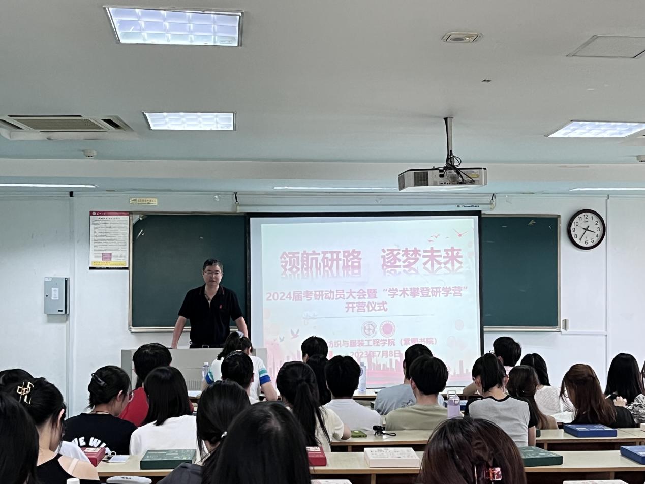 肖甫青向在场全体学生进行了动员讲话。他强调,要科学合理选择科研目标学校,要全力以赴备战考研,同时要求学生工作团队为学生考研提供坚实保障和积极支持,助力同学们考研成功。