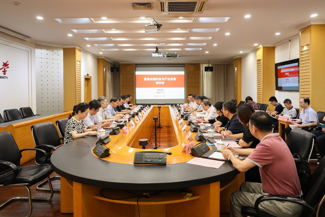 7月12日下午,原农业部党组成员、中纪委驻部纪检组原组长、中国品牌建设丝绸桑蚕品牌集群主席朱保成,率领由农业农村部种植业司、工业和信息化部国际经济合作中心等组成的调研组一行8人调研我校现代丝绸国家工程实验室,并在天赐庄校区红楼会议室召开蚕桑丝绸科技与产业发展调研会。校党委副书记、校长张晓宏、校党委常委、副校长沈明荣,科技党委、学科建设与发展规划处、纺织与服装工程学院、现代丝绸国家工程实验室负责人和相关学科教授参加会议。会议由沈明荣主持。