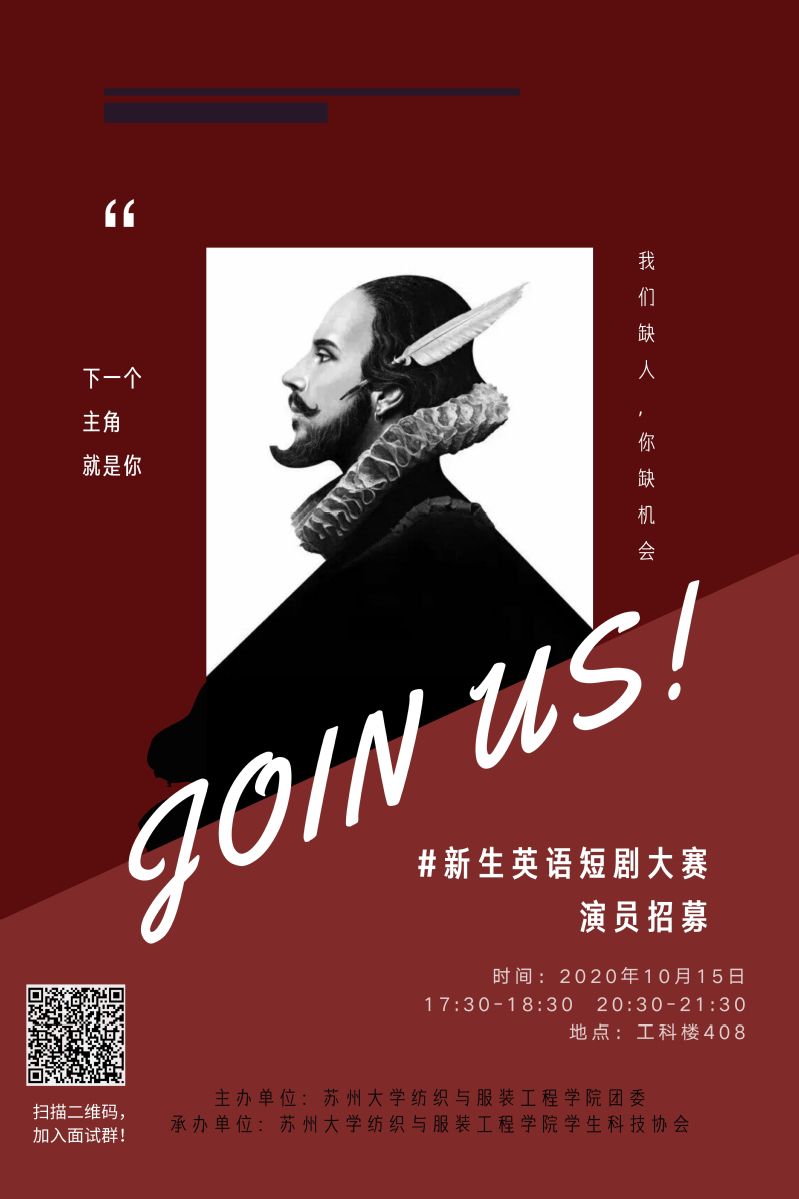 【发展中心】新生英语短剧大赛演员招募
