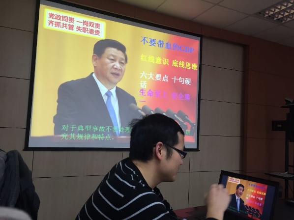 最后,支部书记侯学妮老师说,党的十九大是社会主义进入新时代的关键时期召开的一次十分重要的大会,党的十九大提出了很多新概念,通过学习大家都感觉我们的祖国确实变强大了,越来越好,备受鼓舞。而今天金雪明老师的安全教育讲座紧密联系学校实验室安全管理政策和我院实验室安全管理现状,紧密联系我们支部党员的安全意识和工作实际,使大家增强了安全意识,强化了实验室安全管理的责任感,希望大家一定学以致用,结合自身工作,不忘初心,认真努力,勇于担当,为学院的师生们更好的发展尽一份力,做好实验室安全管理工作。