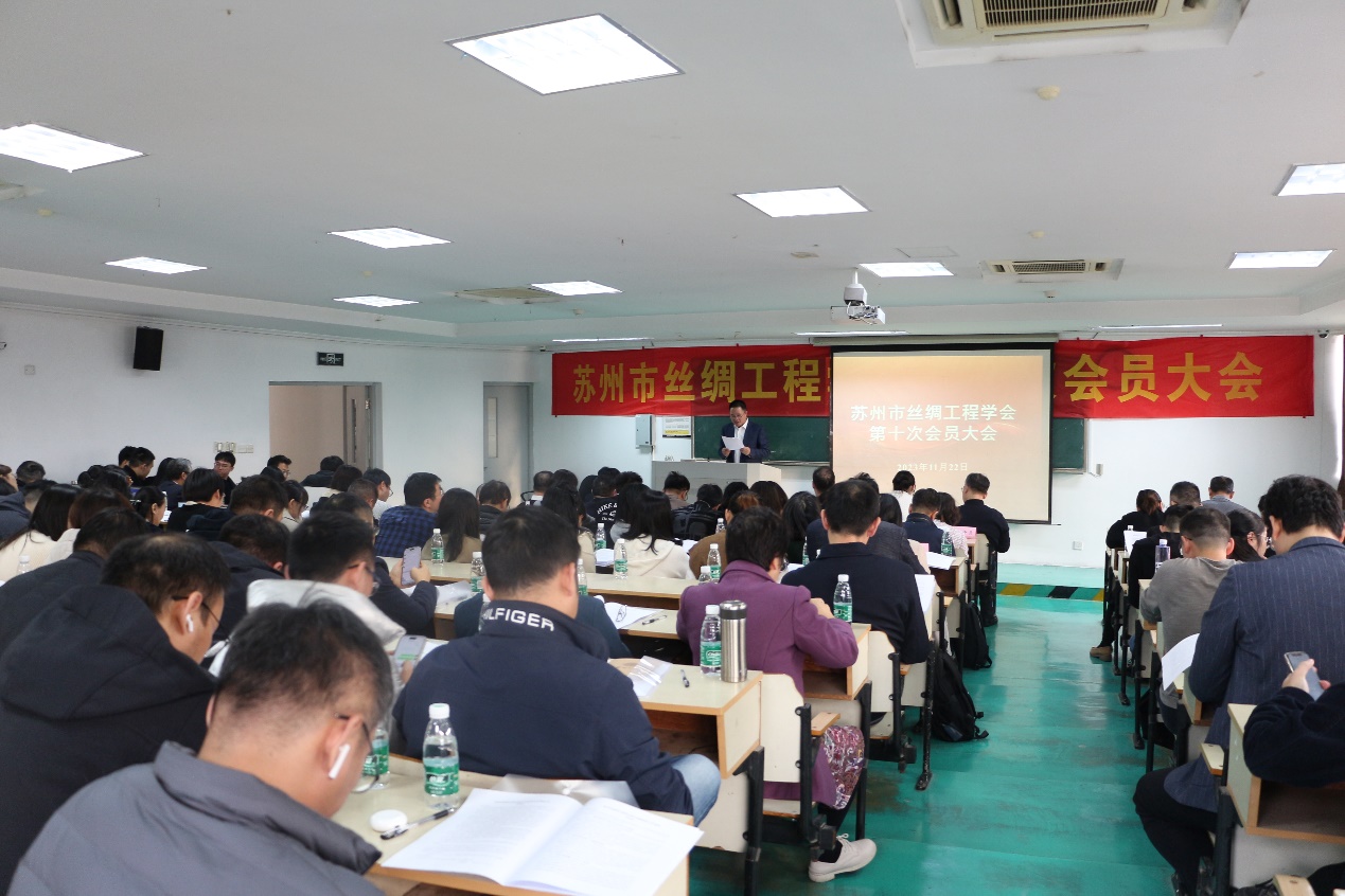 2023年11月22日下午,苏州市丝绸工程学会第十次会员大会在苏州大学北校区工科楼211室隆重召开。有100余名会员参加了本次会议。上级主管部门苏州市科学技术协会党组书记、副主席程波,秘书长兼学会部部长陈嵘等领导亲临会场。