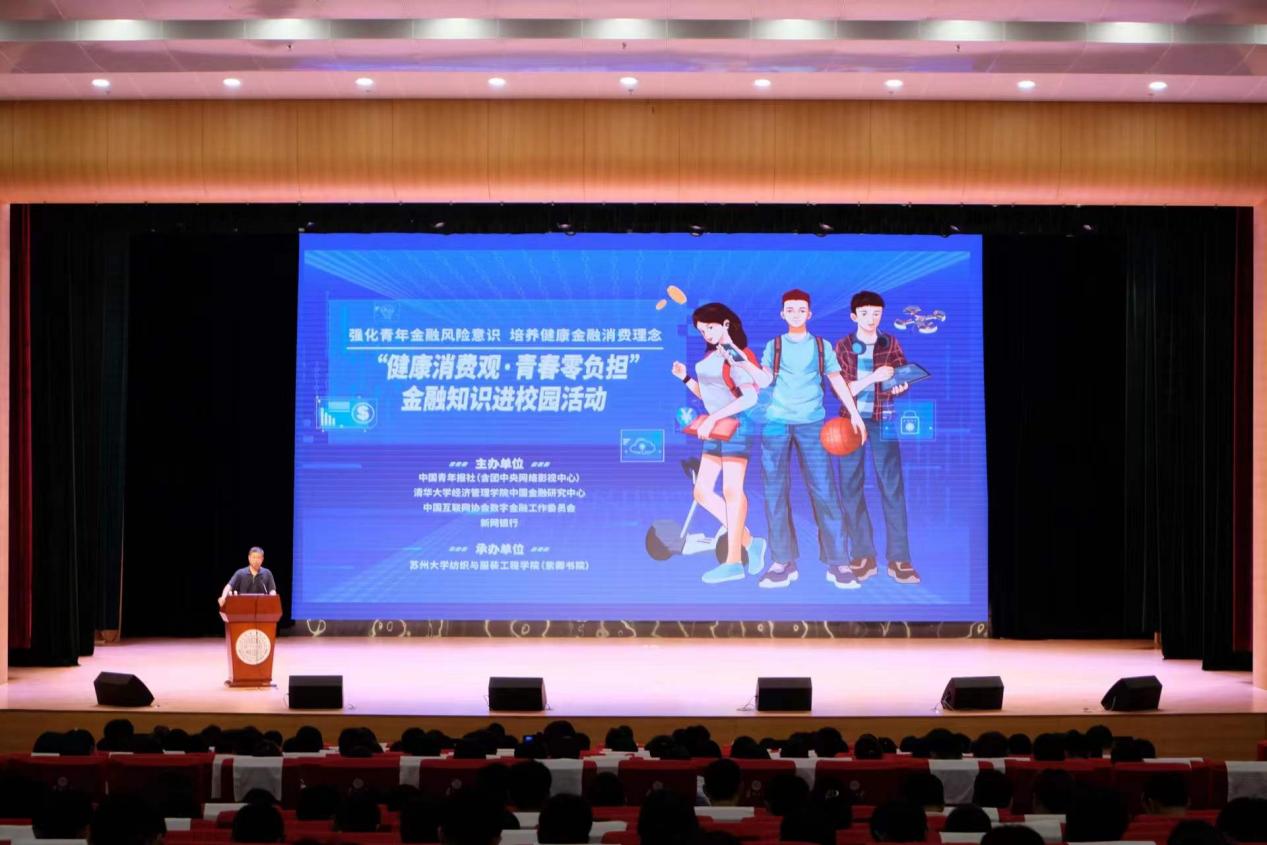 为强化青年金融风险意识,培养健康金融消费理念,9月25日,由中国青年报社联合清华大学经济管理学院中国金融研究中心、中国互联网协会数字金融工作委员会、新网银行共同主办,苏州大学纺织与服装工程学院(紫卿书院)承办的2023年“健康消费观·青春零负担”金融知识进校园活动在本部存菊堂成功举办。