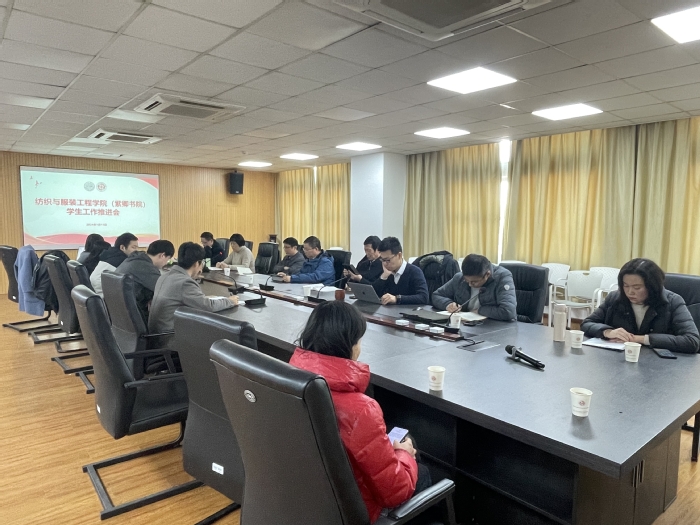 为进一步加强学院辅导员队伍建设,提高学生工作成效,更好服务学院各项事业、助力学生高质量发展,1月15日下午,纺织与服装工程学院(紫卿书院)在北区工科楼422召开学生工作推进会。学院党委书记肖甫青、副院长陈廷,党委副书记、副院长虞岚、现代丝绸国家工程实验室副主任刘欣亮、关工委副主任左保齐、各系主任及全体辅导员出席会议,会议由虞岚主持。