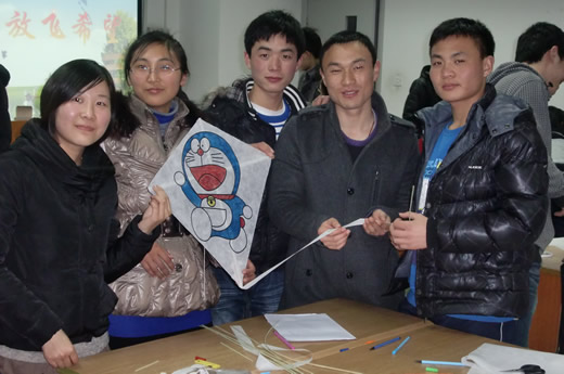 3月19日晚上,工科楼308室热闹非凡、气氛高涨,10级纺织工程班新学期第一次团日活动在这里召开。本期团日活动主题为“放飞梦想,放飞希望”,通过分组制作风筝,进一步增强同学们的团队协作能力和班级的凝聚力。