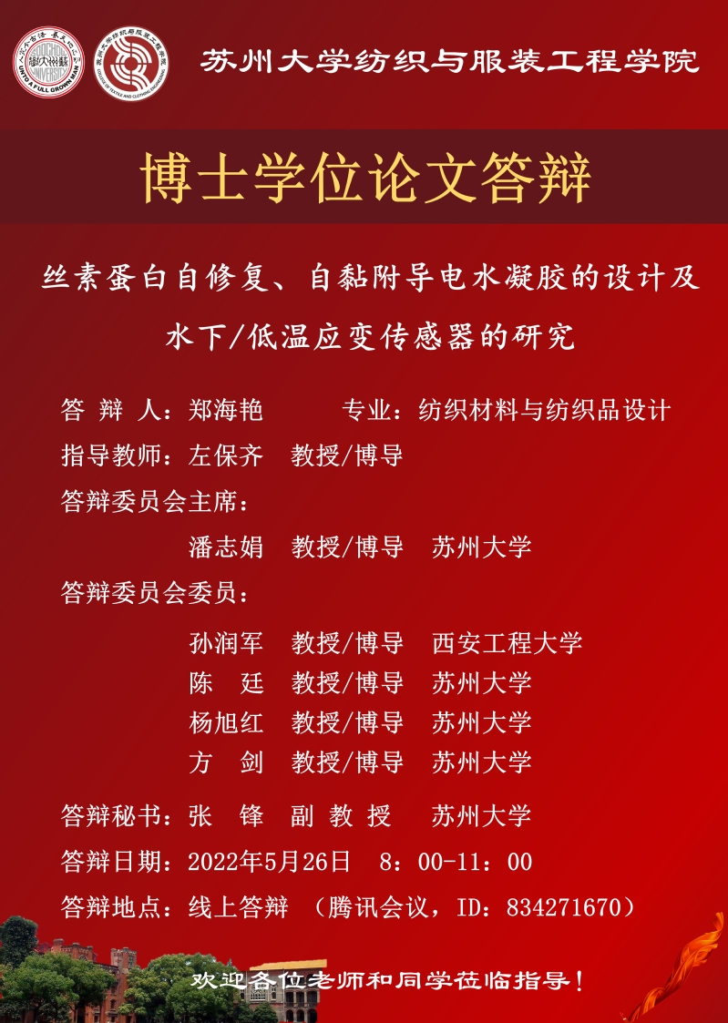 纺织与服装工程学院郑海艳博士学位论文答辩公告