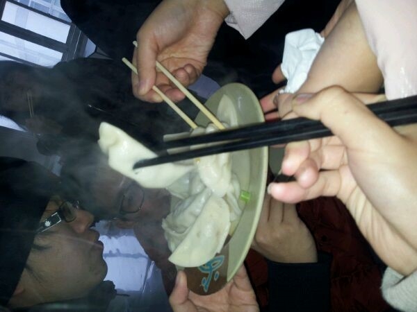 人多力量大,满满的几碗馅很快就被包完,终于,饺子要下锅了!等了许久,一盘又一盘热气腾腾的饺子陆陆续续地被端了出来。同学们争先恐后地品尝着亲手包的饺子,热气与饺子的芬芳氤氲在空气里,暖暖的从舌尖一直到每个人心里。在大快朵颐的同时,那一个个鲜美的饺子也化作了舌尖上最温暖的情谊。