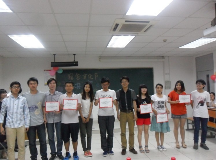每个宿舍的精彩表演都给现场的每个人留下了深刻的印象,让每个人对大学宿舍生活多了更多的期待和喜爱。最后,刘海老师表达了自己的观赛感受,他表示我们正年轻,丰富多彩的大学生活将是我们今后人生珍贵的精神财富,他也希望我们努力学习,为大学生活添加更多的珍贵内容。经过激烈的角逐,北八楼502夺得本次大赛的一等奖,北七楼209和北一楼115获得二等奖,北七楼304、202和208获得三等奖,其他宿舍也都获得了鼓励奖。至此,历时一个月的宿舍文化节完美落幕。