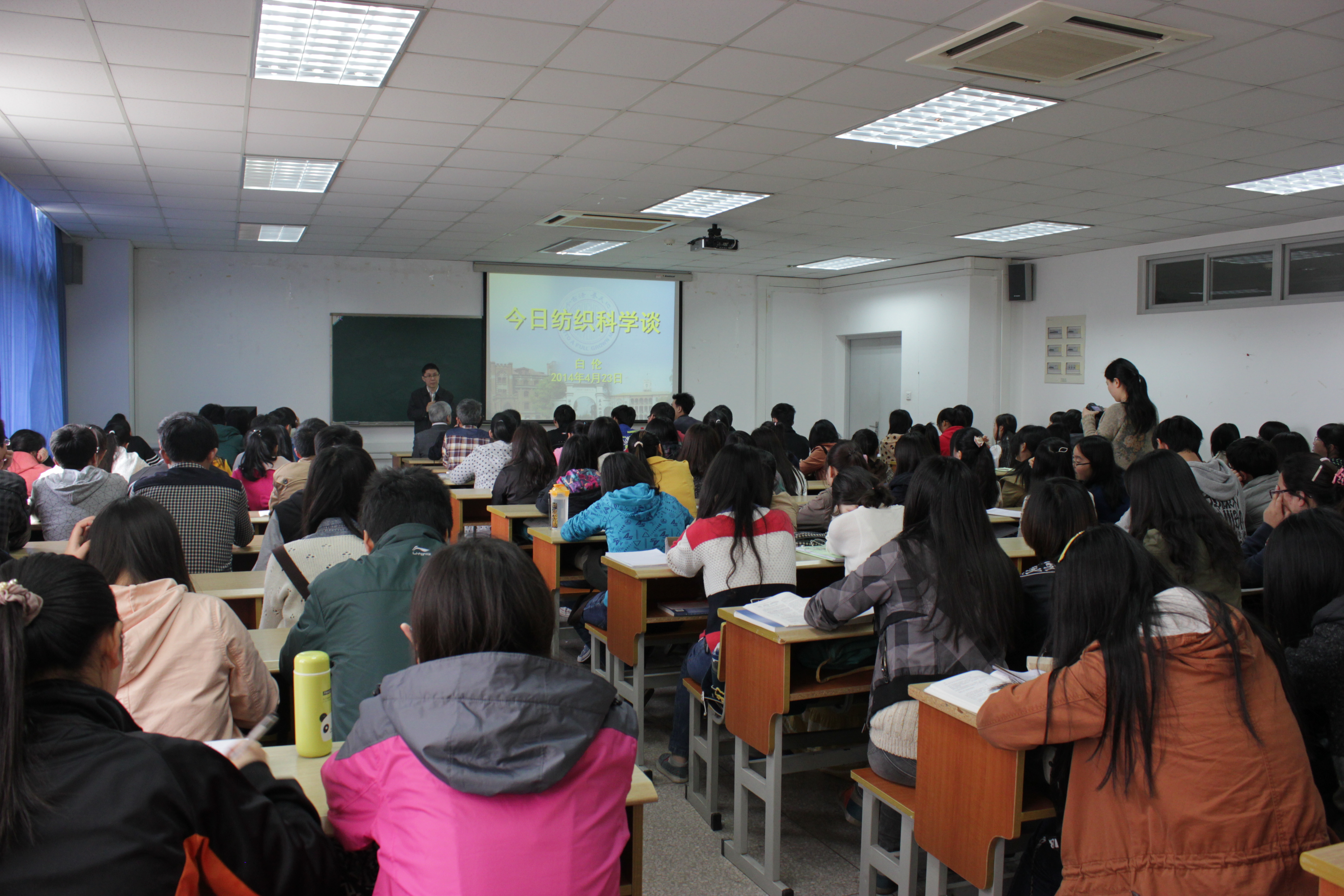 讲座中,白老师分五个篇章系统介绍了纺织材料的历史演变、生产现状以及应用前景。他以硝化人造丝的发明、树皮纤维服饰等历史启示为我们形象阐述纤维纺织是怎样走到今天的;他结合纤维学科教育与科研的使命,让我们领略纤维世界的无限空间;他还以蚕宝宝在常温常压、以水为溶剂便能吐丝等现象举例,感叹纤维科学的奥秘多多,鼓励我们追寻天作之妙的答案;白老师还向我们指明纺织发展的方向,即超常化和多样化的挑战;最后,白老师还以蚕丝生物材料的开发应用,为我们详细介绍了蚕丝材料多样化多功能的广阔应用前景。