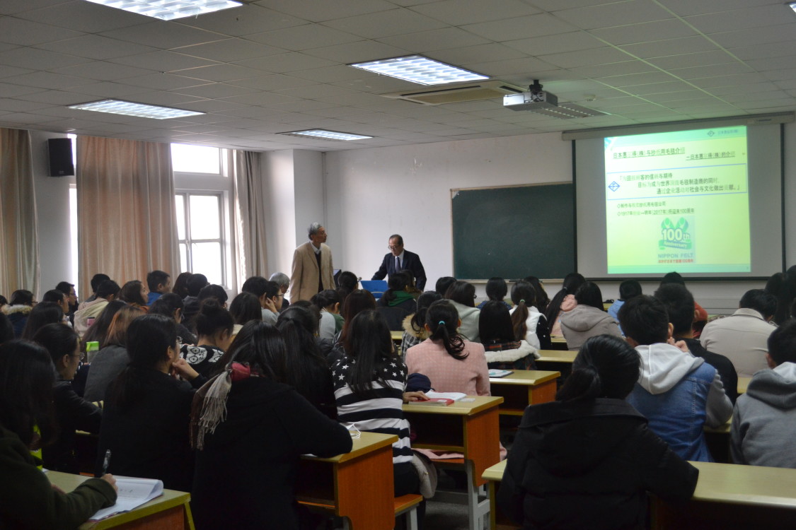 2016年12月5日下午 ,在苏州大学纺织与服装工程学院工科楼后座222教室举办了以“我所经历的企业,技术,经营 ”为主题的讲座。我院特邀日本毛毡公司董事长大山芳男先生为学生们做专业讲座。学院副院长关晋平主持讲座,14、13级学生到场聆听。