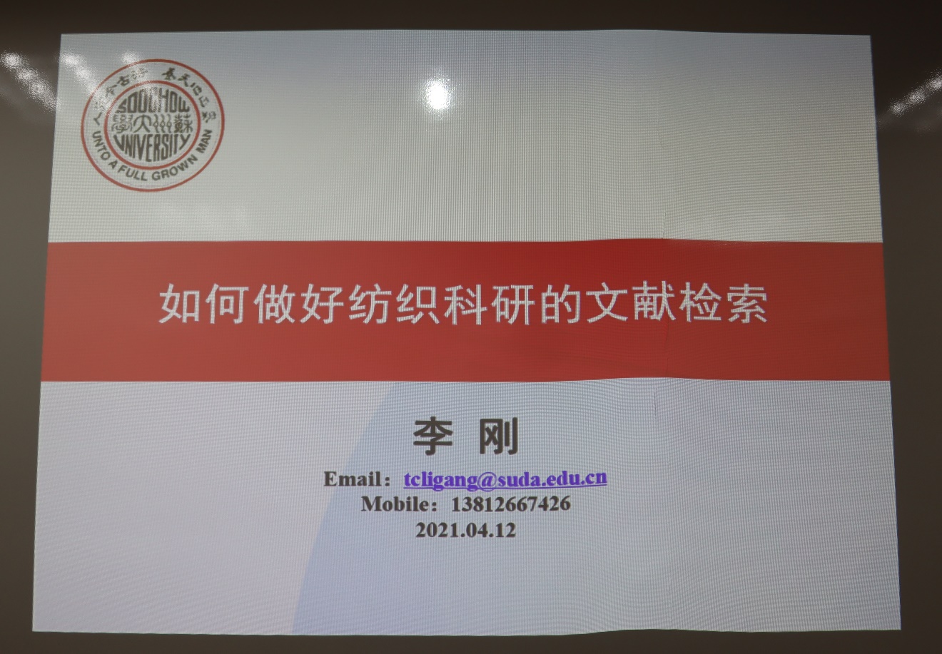 2021年4月12日18:30,由苏州大学纺织与服装工程学院团委主办,苏州大学纺织与服装工程学院学生科技协会承办的登高人才训练营之文献检索指导大会在工科楼后座619隆重举行。主讲人为纺织与服装工程学院特聘副教授李刚老师。