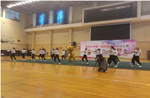 2017年5月13日下午2点30分,苏州大学第一届戏曲广播操比赛在东区室内体育馆拉开帷幕。我院22名同学代表学院参加此次比赛。而自由运动环节更是激发了各学院同学的聪明的才智与特长,广大师生乐在其中。