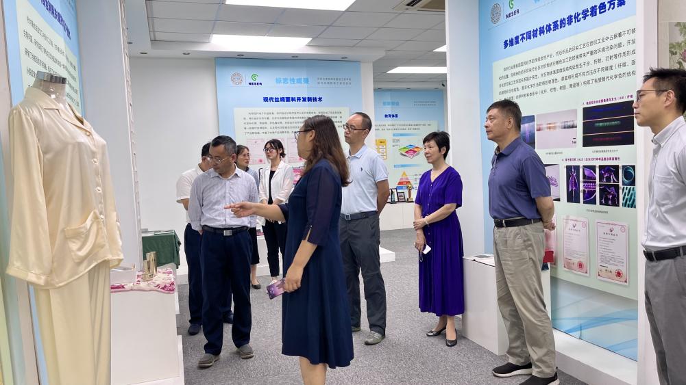 交流会前,倪志强副主席一行参观了现代丝绸国家工程实验室,现场考察了实验室仪器设备、科研成果展示以及部分研究室。