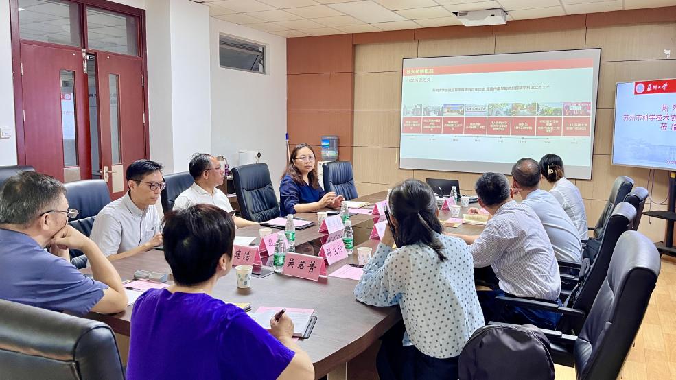 9月14日,苏州市科学技术协会副主席倪志强、学会部部长陈嵘、学会部副部长邵庄为、学会部科员梁秋君,苏州市纺织工业协会秘书长吴庭浩,苏州市纺织工程学会秘书长吴君菁一行6人莅临苏州大学纺织与服装工程学院调研交流,纺织与服装工程学院院长张克勤、副院长关晋平、院长助理魏凯参加座谈会,会议就如何深入推动协会、学会、学院三方融通合作展开交流。