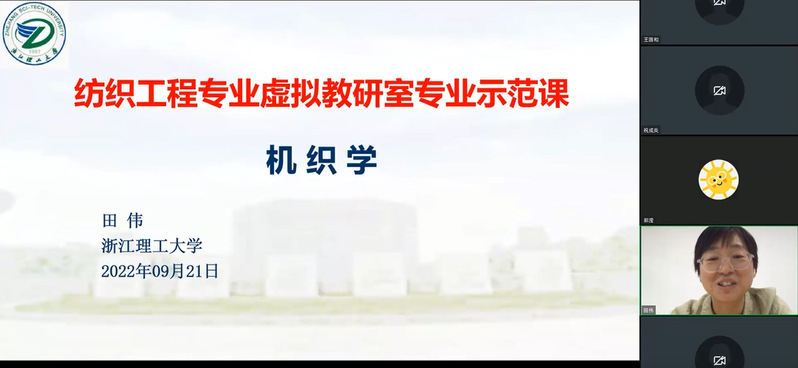 2022年9月21日,“纺织工程专业虚拟教研室”示范课在虚拟教研室工作平台举行。本次示范课由浙江理工大学纺织科学与工程学院(国际丝绸学院)田伟老师带来《机织学》的课程示范。来自苏州大学、江南大学、浙江理工大学、南通大学、上海工程技术大学、绍兴文理学院、常熟理工学院、盐城工学院等8所高校的30余位从事相关课程教学的老师参加了会议。会议由苏州大学纺织与服装工程学院副院长陈廷教授主持。