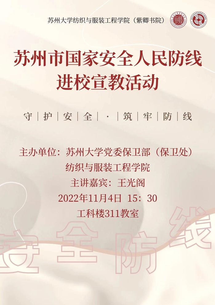 纺织与服装工程学院(紫卿书院)——苏州市国家安全人民防线进校宣讲活动