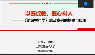 陈廷教授首先介绍了此次研讨会内容,并对虚拟教研室后续活动进行了预告。随后,李庭晓老师以“以赛促教提升教学质量——以“淀粉糊化上浆”为例”为题,杨树老师以“以赛促教,匠心树人——《纺织材料学》思政案例的挖掘与应用”为题,分享了她们在参加青年教师教学竞赛过程中教学能力培养与提升的经验。
