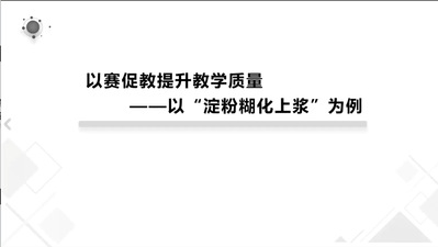 李庭晓老师先是介绍了自己对教学设计、课堂教学、教学反思三部分的理解,以及各部分涉及的具体内容、所占比例和三者环环相扣的设计方法。然后,李老师以“淀粉糊化上浆”这一教学内容为例,阐述了她在教学内容、思政元素、教学组织、语言教态及教学特色上的设计思路。