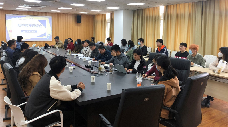 会议的第一项内容是本学期期中教学座谈会。与会同学们围绕人才培养方案、课程设置、课堂教学情况、学生学习情况、疫情影响等方面畅所欲言,积极反馈教学问题及意见和建议。与会老师们认真听取了同学们的心声,并现场详细解答了同学们的问题,能够马上解决的问题当场解决,不能马上解决的问题将及时反馈给相关部门。同时,与会老师们还就如何适应大学学习、如何提高课堂学习效率、如何做好学业规划等与同学们进行了深入交流,对同学们进行了悉心指导。陈廷副院长在总结发言中指出,本科人才培养工作是学院工作的重中之重,学院一直高度重视;学院将进一步加强教学管理和过程性质量监控,保障教学工作的顺利开展;老师们应不断更新教学理念、改进教学方法,同学们也应严格要求自己、提高学习积极性;师生密切交流、充分沟通,共同营造良好、活跃的学习氛围,从而不断提高教学效果及人才培养成效。
