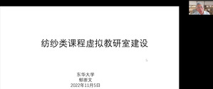 教育部高等学校纺织类专业教学指导委员会主任、东华大学郁崇文教授以“纺纱类课程虚拟教研室建设”为题,介绍了纺纱类课程虚拟教研室建设背景、目标与任务,详细展示了虚拟教研室在组织架构、课程建设、平台建设、知识图谱建设等方面已经开展的工作以及在教研活动、教师培养、资源共享等方面的建设规划。