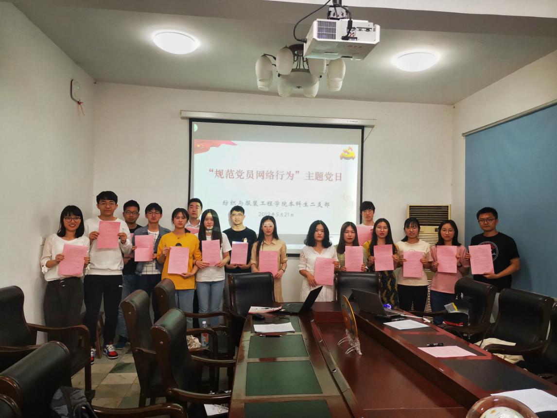 2019年5月21日下午16:00,苏州大学纺织与服装工程学院本科生二支部“坚守网络文明,保障网络安全,推进网络强国”——主题党日活动在北区丝韵楼316大会议室举行。此次活动通过分享交流的形式,使支部党员对于网络文明和网络安全有了一个新的认识。
