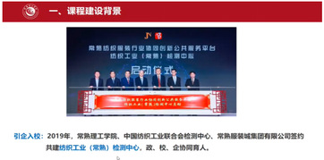 2022年12月27日,“纺织工程专业虚拟教研室”示范课在虚拟教研室工作平台如期举行。本次示范课由常熟理工学院刘雷艮老师带来《纺织检测实验室设计与管理》的课程示范。来自苏州大学、江南大学、浙江理工大学、南通大学、上海工程技术大学、绍兴文理学院、常熟理工学院、盐城工学院等8所高校的30余位从事相关课程教学的老师参加了会议。会议由苏州大学纺织与服装工程学院副院长陈廷教授主持。