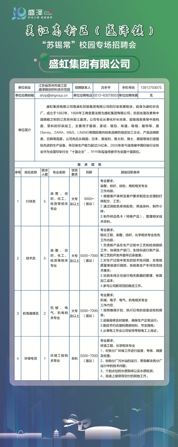 【招聘信息】盛虹集团有限公司