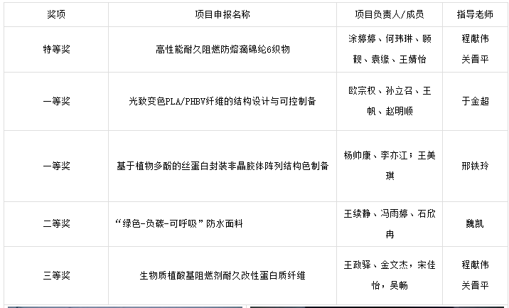 我院学子在第四届全国大学生绿色染整科技创新大赛中再获佳绩