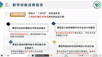 陈廷教授代表与会人员感谢苏淼教授的精彩分享,并就教学创新思路与举措和教学创新成效等问题对此次分享会进行了总结。陈廷教授感谢各兄弟院校对虚拟教研室建设的大力支持,希望通过虚拟教研室云上交流提升纺织类高校教师教书育人能力和人才自主培养质量,推动信息技术与教育教学更好地融合发展。