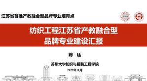 苏州大学纺织与服装工程学院副院长陈廷教授从苏州大学纺织工程专业基本情况、建设内容、建设目标与成果等方面介绍了纺织工程江苏省产教融合品牌专业建设的举措、经验与成效。