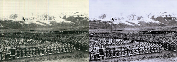 今年七一前夕,苏州大学老师前往沈阳拜访老校友乐于泓的夫人时钟曼及其儿女,接收其捐赠的乐于泓生前的12本日记、小说、媒体报道、手稿以及相册等珍贵历史档案。实践团利用暑假对捐赠的照片进行了编号、分类与整理,利用Photoshop、老照片修复等制图软件,通过裁剪、修复、锐化等方式对这一批珍贵的老照片进行了高清修复,丁香烈士、乐于泓校友形象更加饱满地呈现出来,乐于泓参与西藏和平解放珍贵镜头也得到了高清再现。实践团完成了450余张照片的电子化和高清修复上色工作,并冲印了9大本实体相册和两本电子相册,回赠给乐于泓的家人们进行保存和纪念。