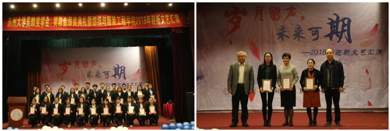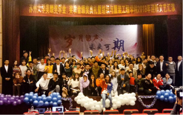 2018年10月27日晚,2017-2018学年苏州大学美麟奖学金、奖教金颁奖典礼暨纺织与服装工程学院2018年迎新文艺汇演在苏州大学本部敬贤堂隆重举行。苏州美麟进出口有限公司总经理唐坚,总经理助理蔡雯嫣,人事辛欣,苏州大学美麟奖教金评审委员会主任委员、苏州大学原副校长白伦,纺织与服装工程学院院长潘志娟,副院长王祥荣、关晋平,党委副书记、副院长卢永嘉,副调研员、综合办公室主任司伟,学院全体辅导员老师、2018级班主任及师生代表共同参加了本次颁奖典礼,典礼由纺织与服装工程学院本科生辅导员孙晓旭主持。
