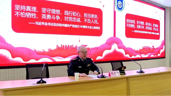 肖汉涛从习近平总书记七一重要讲话出发,向同学们解读了党的国防安全思想体系。我党始终坚持“居安思危,敢于斗争,强军备战”的国防安全思想,在百年征程中磨炼了从容应对危难险阻的经历和气度。接着肖汉涛结合国内国外局势,全面分析了我国目前面临的国防安全形势,介绍了人民军队现有的国防安全实力,教导同学们要充分认识世界百年未有之大变局和国际国内局势,充分认识到中华民族伟大复兴已进入了不可逆转的历史进程,不要低估党和国家维护国家统一的决心和能力,青年大学生要争做祖国统一的推动者,增强国防观念,心系国家安危,自觉关注国防,努力为国防和军队现代化建设贡献智慧和力量。