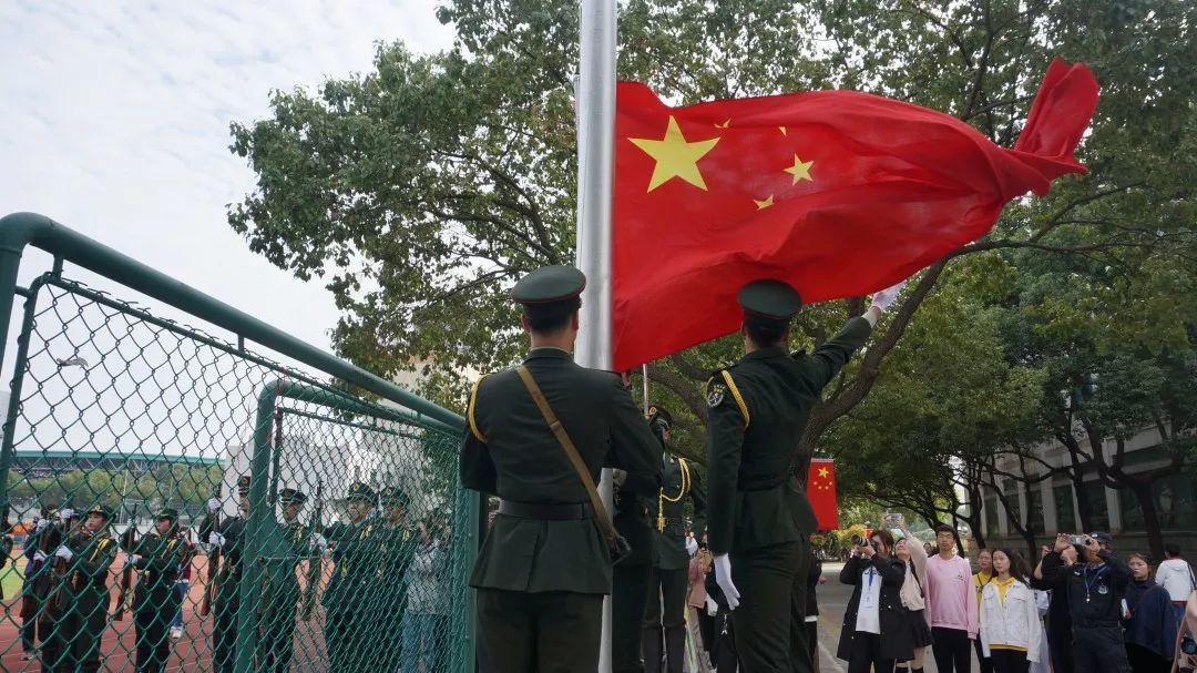 国旗班守护着国旗缓缓走来