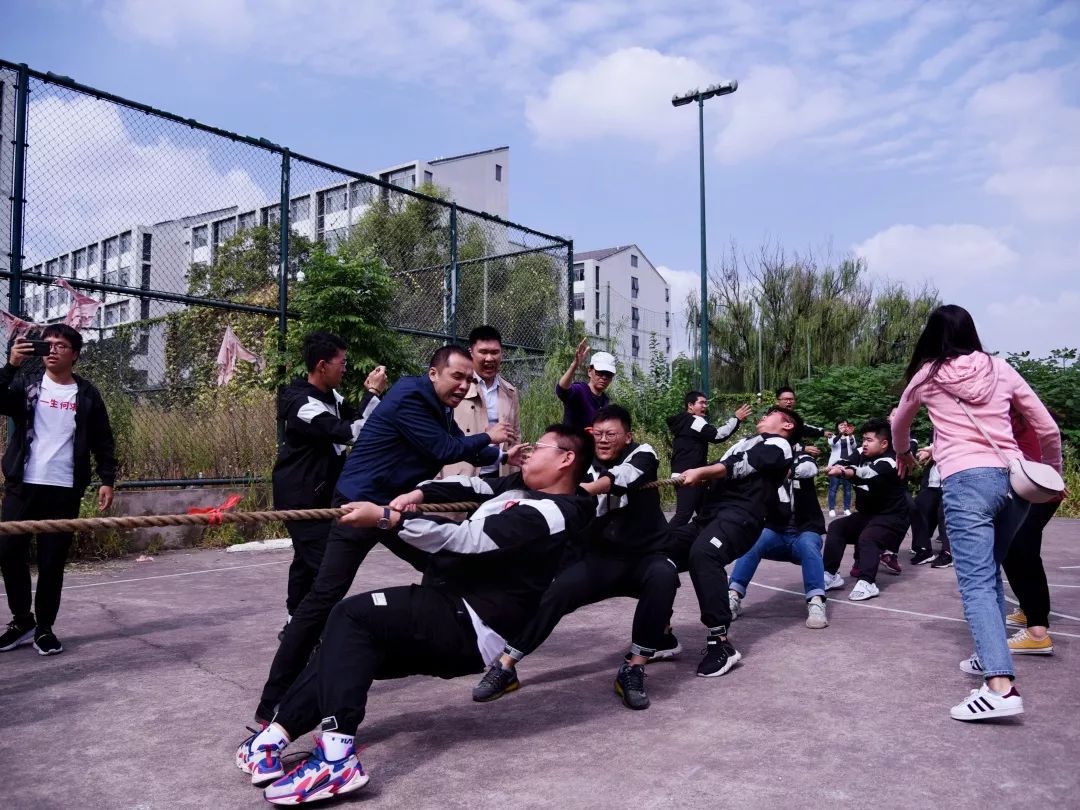 拔河运动员用力嘶吼着,用尽全部力量,为纺院的荣誉而战