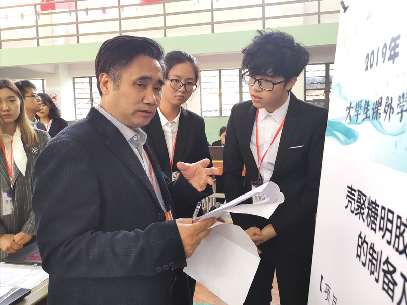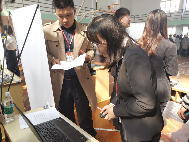 本次竞赛共有46支优秀的团队参与,由评委老师对各科研小组进行结题答辩审核。在两支科研团队《多巴胺疏水处理及其在废弃纺织品中的应用》与《醋青纤维面料的设计与开发》公开答辩演示后,各科研团队进行自由答辩环节。