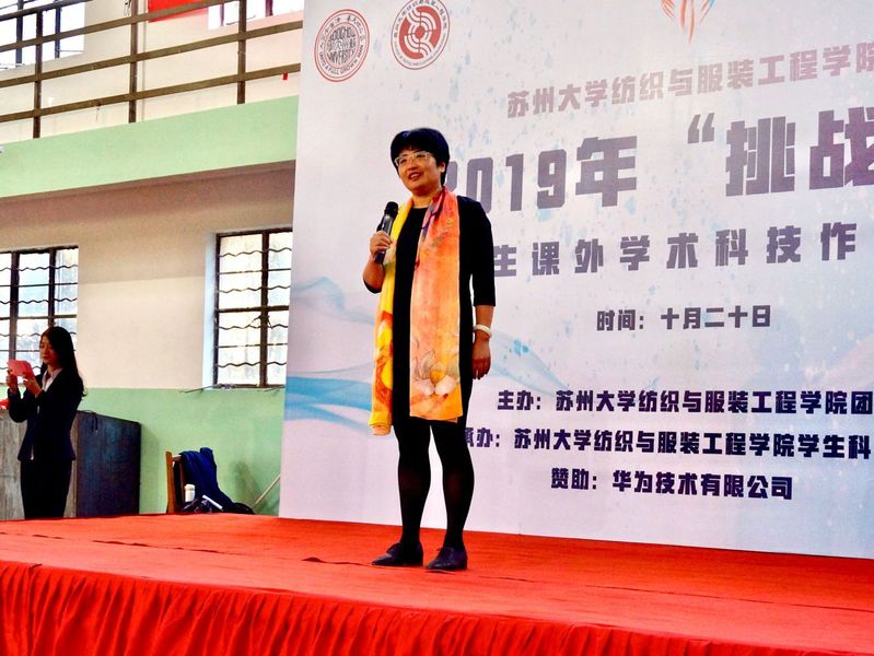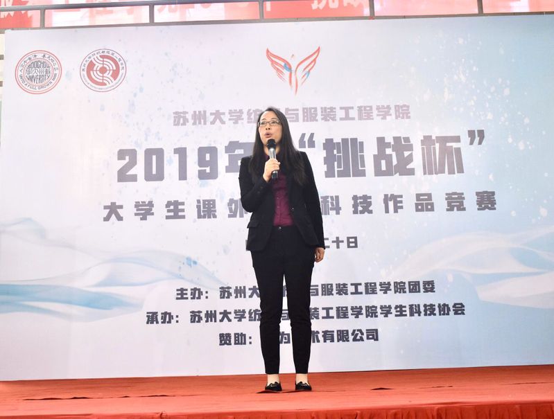 10月20日上午8点30分,苏州大学纺织与服装工程学院2019年“挑战杯”大学生课外学术科技作品竞赛在苏州大学北校区体育馆隆重举行。本次活动由苏州大学纺织与服装工程学院团委主办,学院学生科技协会承办,华为技术有限公司赞助支持。苏州大学校团委副书记徐美华老师,苏州大学纺织与服装工程学院院长潘志娟老师,学院党委副书记、副院长严明老师应邀出席本次活动。学院团委、学工办老师,校科协及各学院科协代表,学院2017级、2018级、2019级全体同学参加了此次活动。本次竞赛的评委由纺织工程系眭建华、王国和老师,服装设计与工程系蒋孝锋老师,非织造材料与工程系杨旭红老师,轻化工程系王钟老师等共同担任。