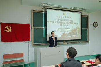 最后,党委书记董召勤讲话,他首先对学院始终坚持传承学生党员先锋模范目标管理责任书制度感到欣慰,他要求全体学生党员用习近平新时代中国特色社会主义思想武装头脑,始终牢记一名共产党员的初心使命,坚定理想信念。立足岗位,担当作为,积极投身实践,做出表率,以“党员亮身份、服务亮承诺、工作亮标准、担当亮作为”的标准,争当新时代奋斗者。