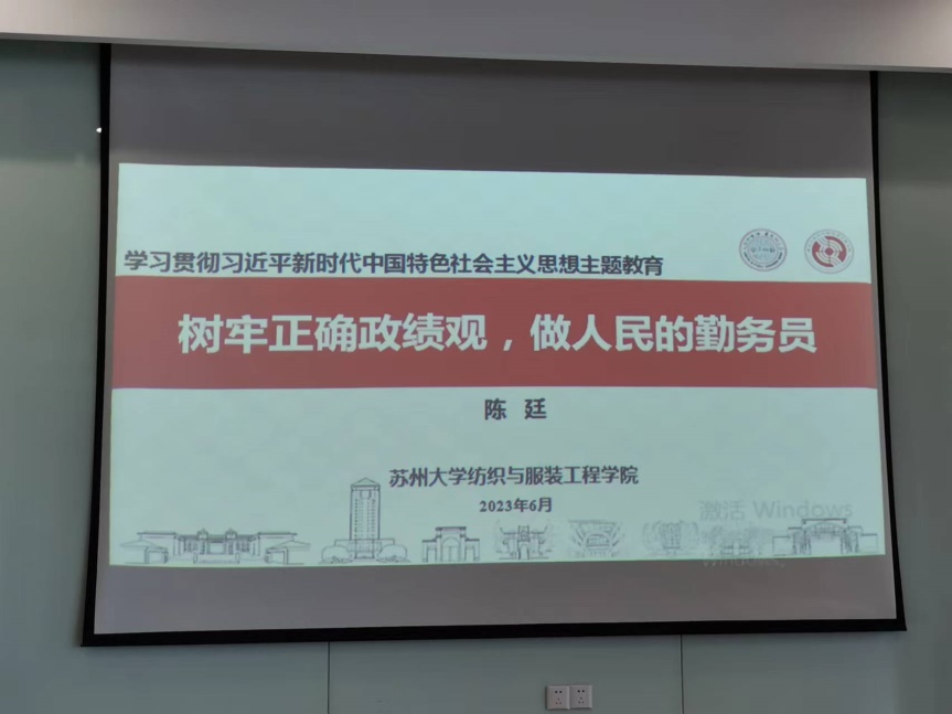 在活动开始,纺织与服装工程学院党委委员、副院长陈廷教授为教工二支部党员上了一堂生动的微党课——“树立正确政绩观,做人民的勤务员”。随后,支部同志结合自身情况进行了深入交流。大家一致认为,作为教师,应当立足学生需求,立德树人,严守师道,加强学习,始终保持先进性,把身心奉献给教书育人这一崇高而伟大的事业。