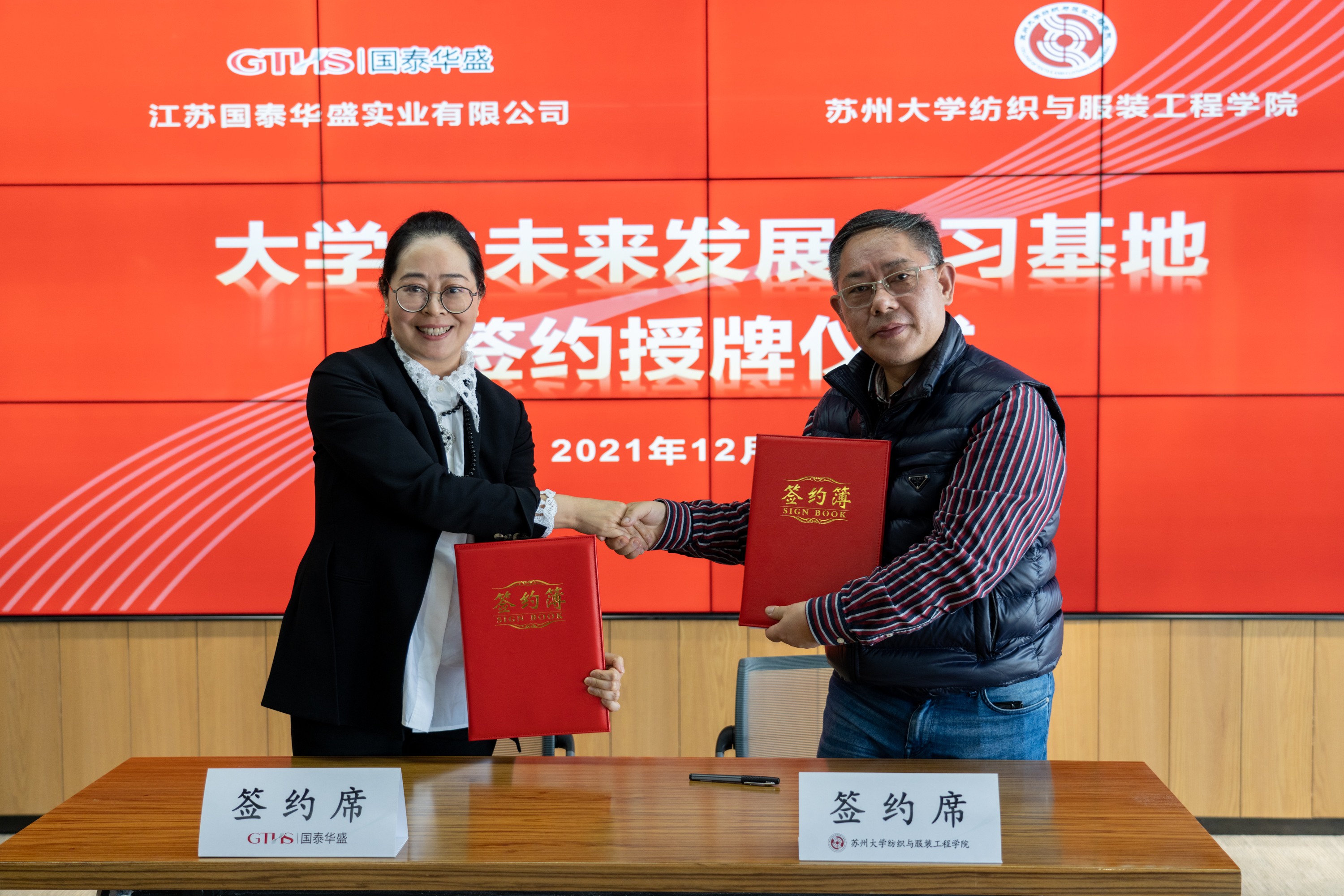 在校地各方的支持下,苏州大学纺织与服装工程学院与江苏国泰华盛实业有限公司将围绕人才培养、产学研合作等角度展开精诚合作,努力推动企业转型升级、高校科技成果转化落地、人才多元化培养等,实现为企业产业升级赋能,为高校人才培养赋能,为地方产业经济发展注入新动能。今后,校企双方将携手共进、协同创新,必将行稳致远。