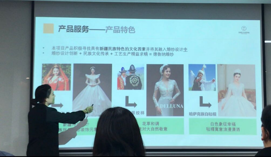 我院《女神的嫁衣——新时代的民族特色品牌婚纱“德鲁纳”》项目团队及《膜纺未来——中空纤维膜技术革新者》项目团队从67个项目中脱颖而出。《女神的嫁衣——新时代的民族特色品牌婚纱“德鲁纳”》项目团队获得一等奖,该团队将新疆传统文化元素引入现代婚纱设计,从时尚的角度来阐述民族文化,用婚纱承载文化创意,助力新疆地区婚纱产业振兴,带动区域融合,实现共荣发展。此外,《膜纺未来——中空纤维膜技术革新者》项目团队获得二等奖。该团队研发出增强型PVDF中空纤维复合生物膜技术用于河道的污染治理。通过恢复水体本身的生态结构恢复水体的自净能力,从根本上促使河道水质得到净化和改善。