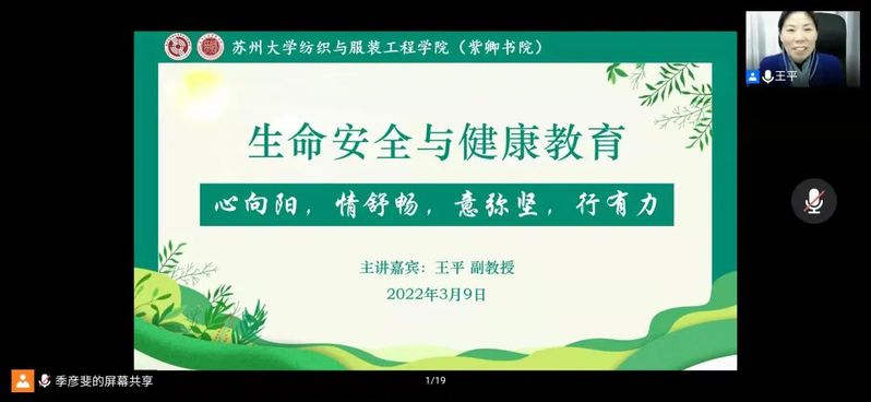 心心点灯,共克时艰。3月9日下午,纺织与服装工程学院(紫卿书院)邀请硕士导师、王平副教授作题为《心向阳,情舒畅,意弥坚,行有力》的线上专题讲座,本次活动由学院学工办主任季彦斐主持。