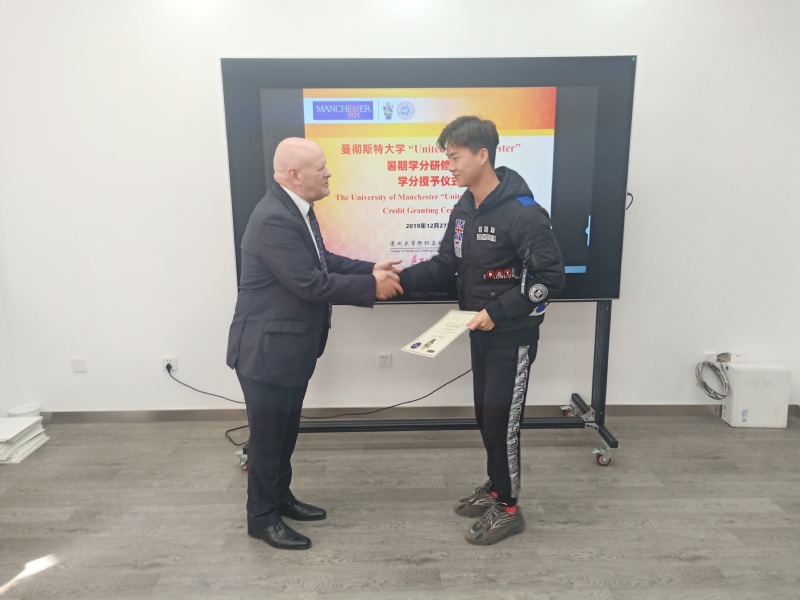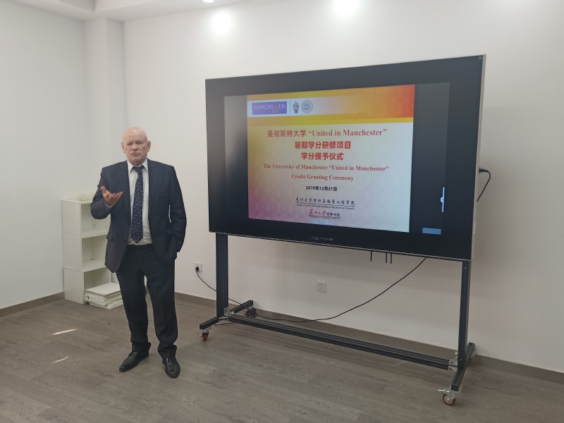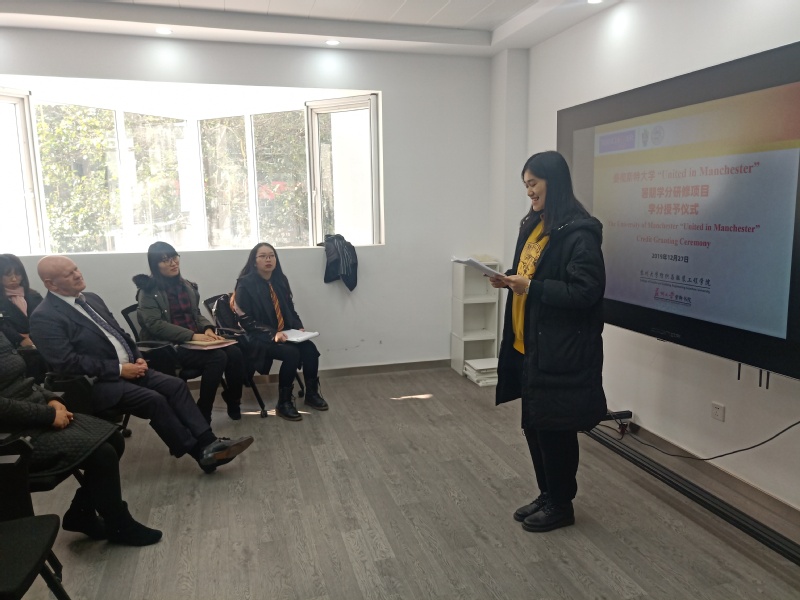 12月27日,纺织与服装工程学院(紫卿书院)在语言交流中心举行了2019年曼彻斯特大学“United in Manchester”暑期学分研修项目学分授予仪式。出席仪式的嘉宾有曼彻斯特大学材料学院教师Paul Cowell、纺织与服装工程学院副院长关晋平、学工办主任季彦斐、教务办公室副主任吴菲非以及参与2019年曼彻斯特大学“United in Manchester”暑期学分研修项目的23位学生和有意向参与此项目的学生。