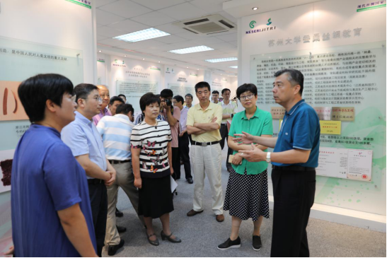 8月28日,江苏省政协副主席阎立一行来到苏州大学现代丝绸国家工程实验室,就丝绸文化传承与发展进行调研。省政协文史委员会副主任崔广怀、苏炳根、徐忆农,省政协文史委员会原副主任沙卫平,省政协学习委员会副主任朱维宁等省市有关部门负责同志陪同调研。校党委书记江涌,党委副书记、副校长路建美,现代丝绸国家工程实验室执行主任陈国强,纺织与服装工程学院院长潘志娟,党委书记董召勤,副院长王祥荣等接待了来访嘉宾一行。