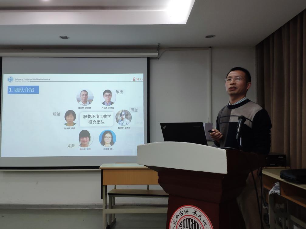 服装设计与工程系的戴宏钦教授以“聚团队智慧,谋科研发展-以服装环境工效学团队为例”为题,着重介绍了关于服装舒适性、防护服装及智能服装等方面的相关理论研究及目前市场产品开发情况。
