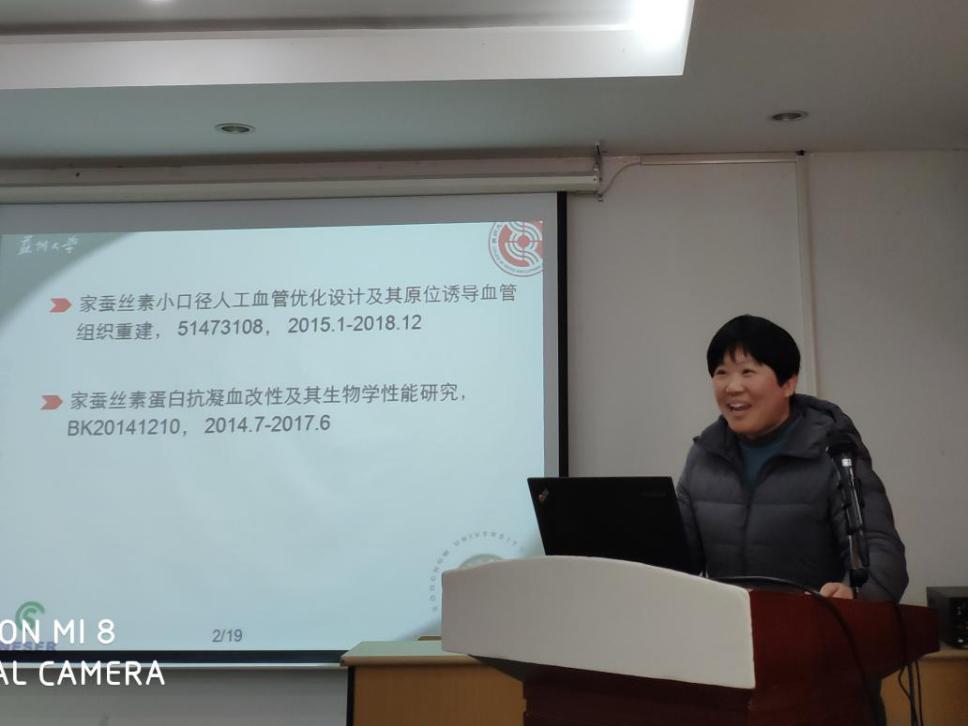王晓沁教授课题组、张克勤教授课题组、王建南教授以及卢神州教授等分别围绕“丝素蛋白药物缓释载体的构建及体内外应用效果评价”、“丝素蛋白基多级微纳仿生结构对细胞生物行为的影响”“蚕丝小口径人工血管的研究”等领域的科研成果作出了专题报告。