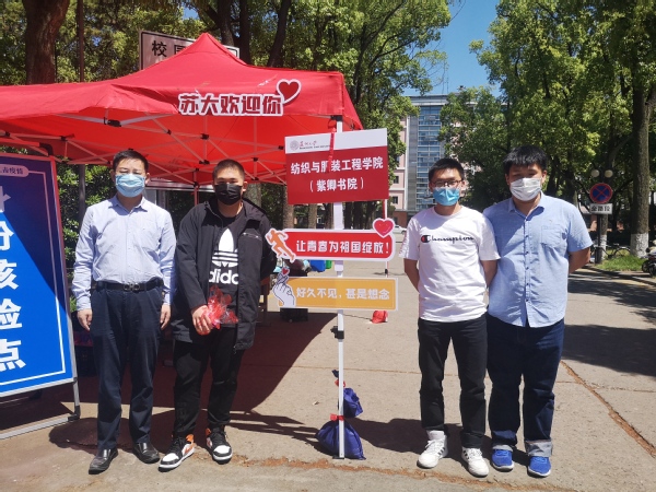 5月9日-5月12日,纺织与服装工程学院共368名本科生、202名研究生,分年级、分批次、分日期返校。蓬勃朝气伴随着返校同学的平安归来充满整个校园。校党委书记江涌、总会计师周高、副校长刘标等校领导及职能部门负责人到北校区、独墅湖校区报到现场调研指导学生返校报到工作,关心询问我院学生返校情况。
