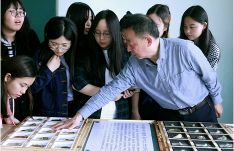 刘立人先生是丝绸界名人,身为丝绸企业家,从事丝绸行业工作四十余年,对丝绸有着很深的情结。为了此次讲座,刘先生精心准备,做足功课,年近七十、眼睛老化,但还是精心制作了页面精美、图文并茂的PPT课件,并精挑细选了积年收藏的古代蚕桑玉雕以及缂丝、纱罗、宋锦、漳绒等的苏州丝绸技艺代表作品实物带到现场展示。讲座内容面广量大又高度概括,传达的知识、文化让听者受益匪浅,表述娓娓道来、引人入胜,情至深处还肢体语言相加,教人只有屏息聆听,现场展品更是锦上添花,令人眼花缭乱、啧啧称奇。
