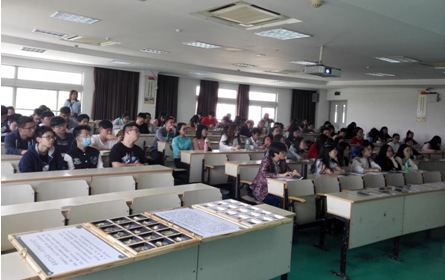 2018年4月20日下午,一场题为“苏州丝绸文化及经典技艺”的专家讲座在苏州大学北校区工科楼311举行。受邀讲座的专家是中国丝绸档案馆专家库专家、江苏省丝绸协会专家委员会专家、苏州吴绫丝绸精品有限公司董事长、高级工程师刘立人先生。此次专家讲座主要面向我校纺织与服装工程学院学生,也有一些学校教师、苏州丝绸界人士慕名前来,120余个座位的教室济济一堂。